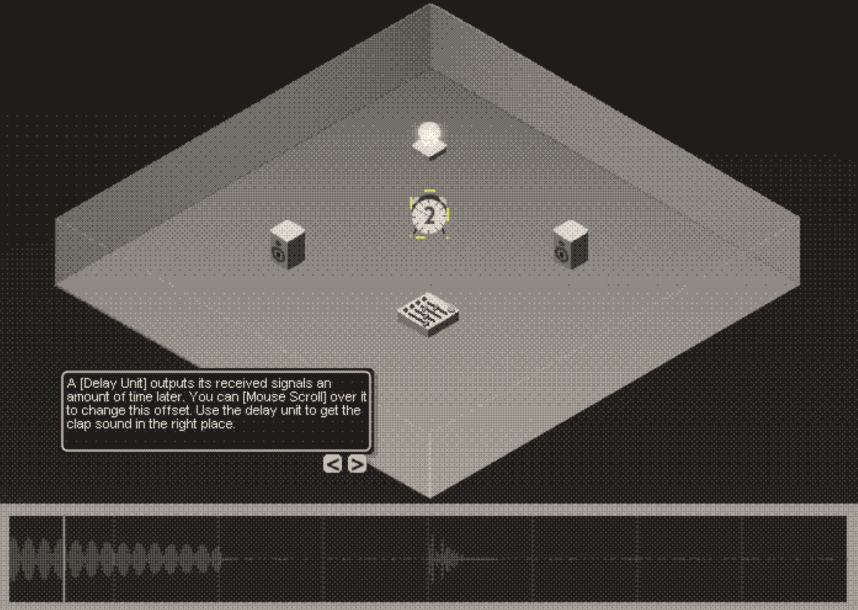 The game takes place in a 2-second long looping audio environment, where your aim is to record, chop up, and manipulate found audio into resembling a range of drum loops.